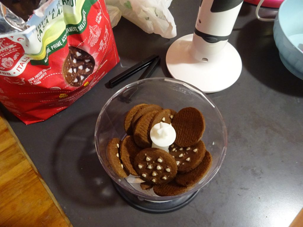 For the base, I used cocoa cookies but you can easily replace them with classic shortbread cookies, plain cookies, or whole grain shortbread cookies.