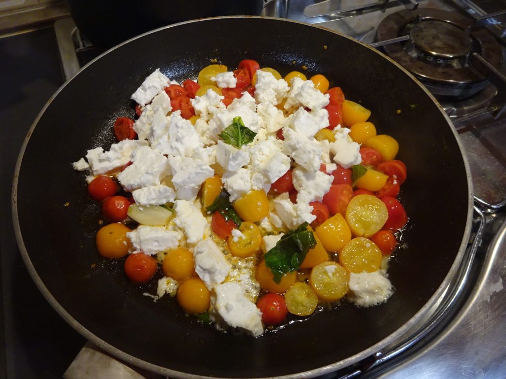 Preparation of Feta and Cherry Tomato Pasta