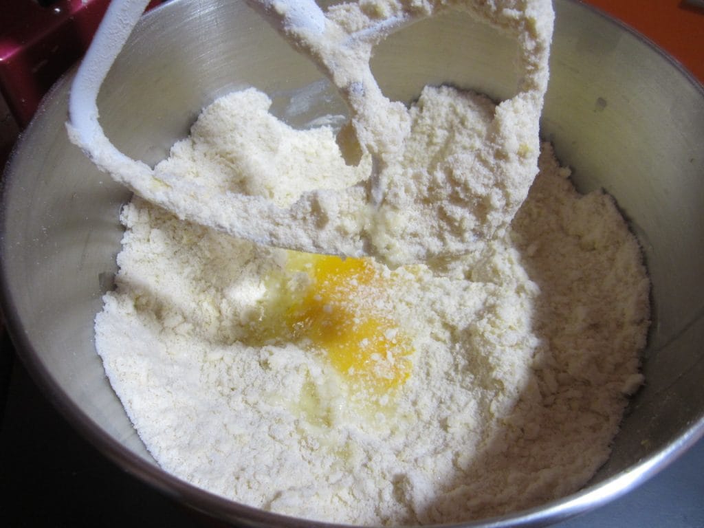 Start the stand mixer at medium-low speed. Work until the butter and flour are well combined.