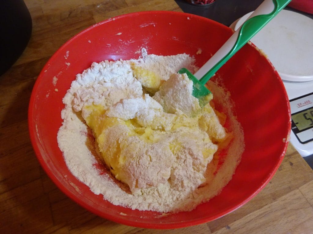 Then add the all-purpose flour and mix with a spatula until it is fully absorbed.
