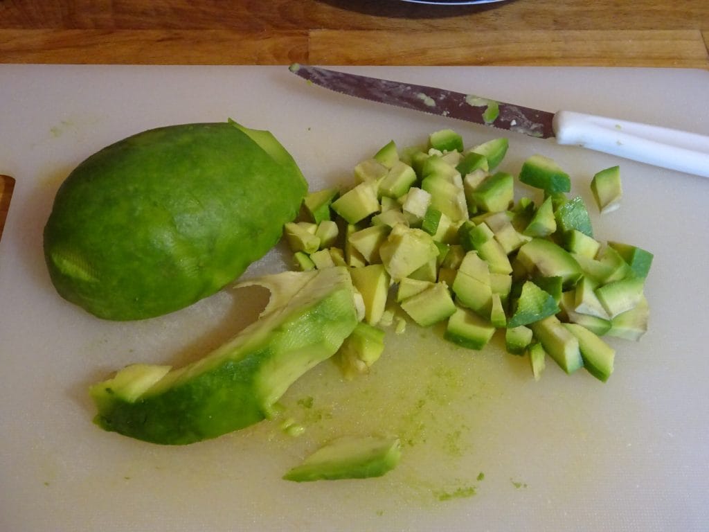 The original Mexican recipe calls for fresh chili, green or red, but since it is not greatly appreciated at home, I used chili powder so everyone can dose it to their liking on their plate.