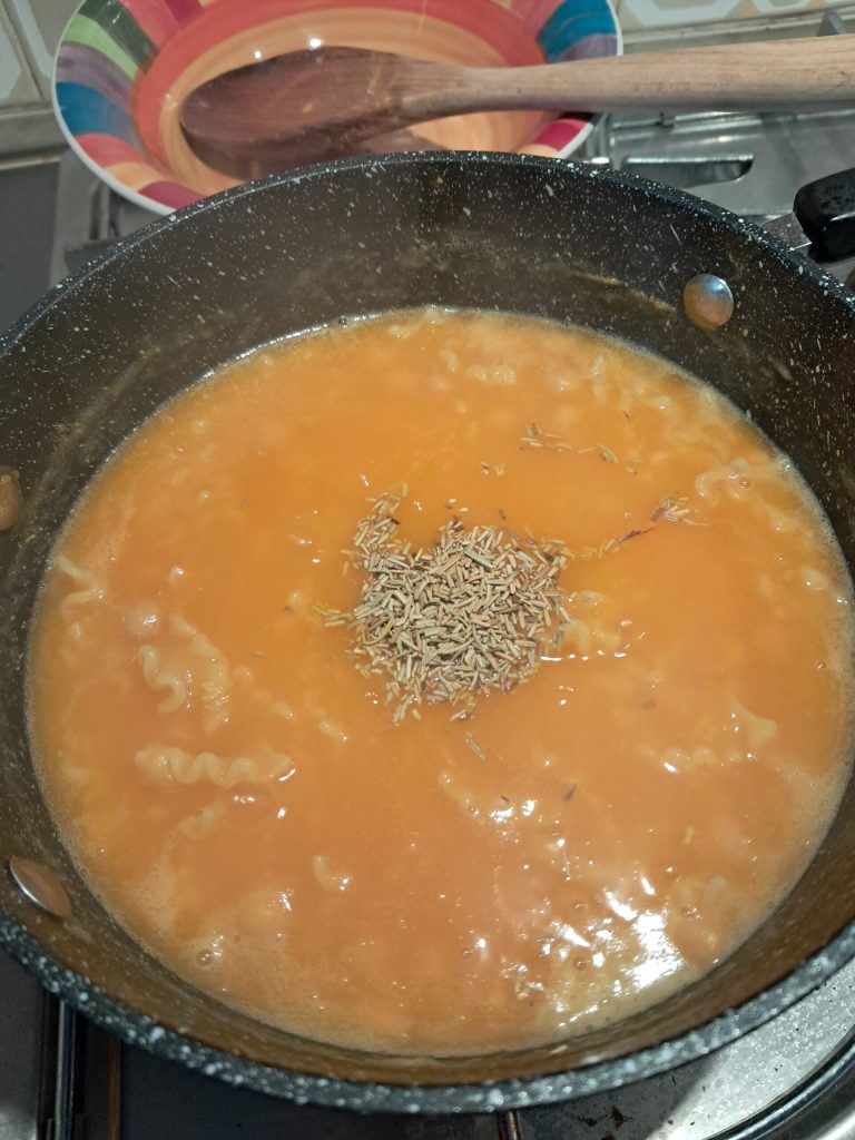 Once the pasta is cooked, add chopped dry or fresh rosemary.