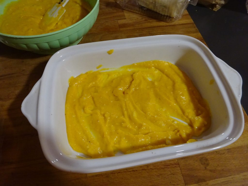 On the bottom of the baking dish, make a layer of pumpkin béchamel.