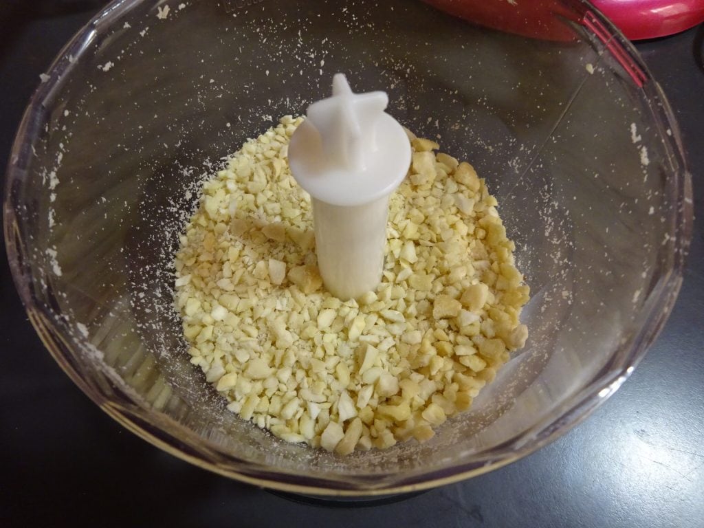 Start the stand mixer at medium/low speed and mix the ingredients until you get a crumbly mixture.