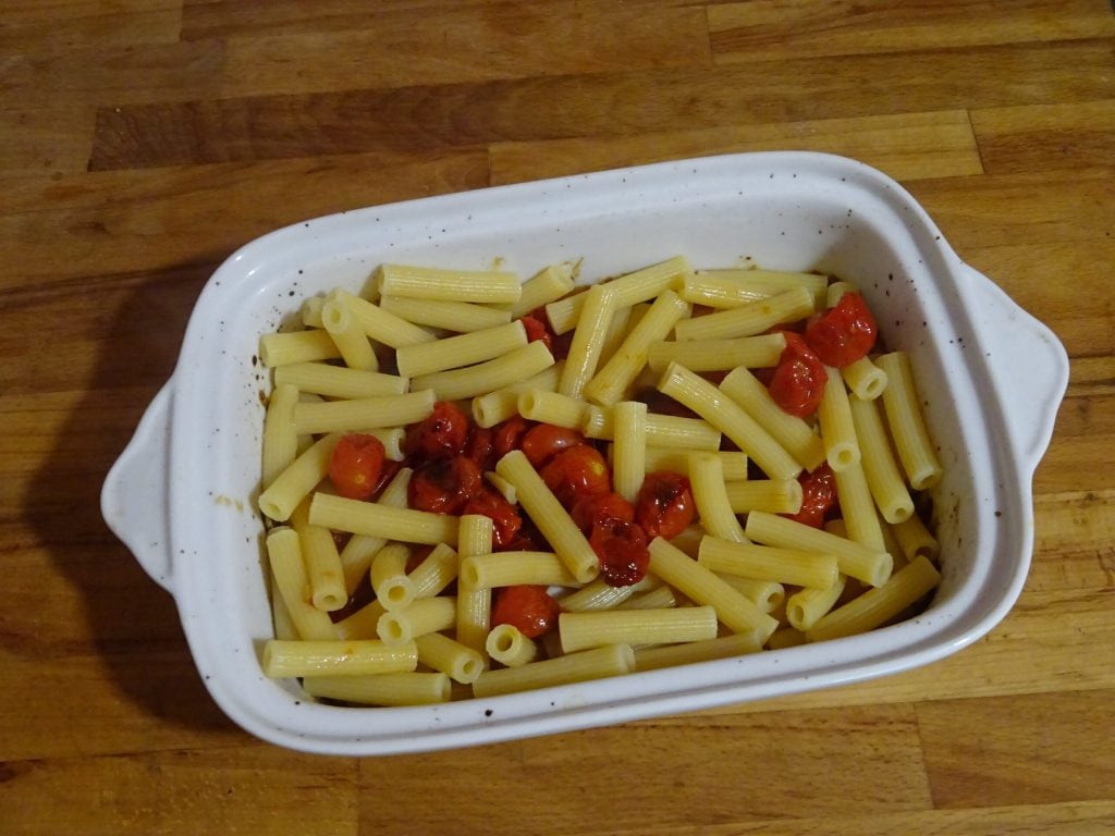 And voilà… now all you have to do is plate your sedani with baked cherry tomatoes and pesto and bring it to the table.