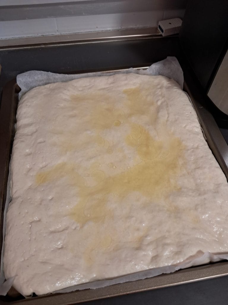 With the 30×30 cm pan, the focaccia is slightly thick; if you want it thinner, use a 35×35 cm or 40×40 cm pan. Remember to check the cooking time, as it will take 1 or 2 minutes less.