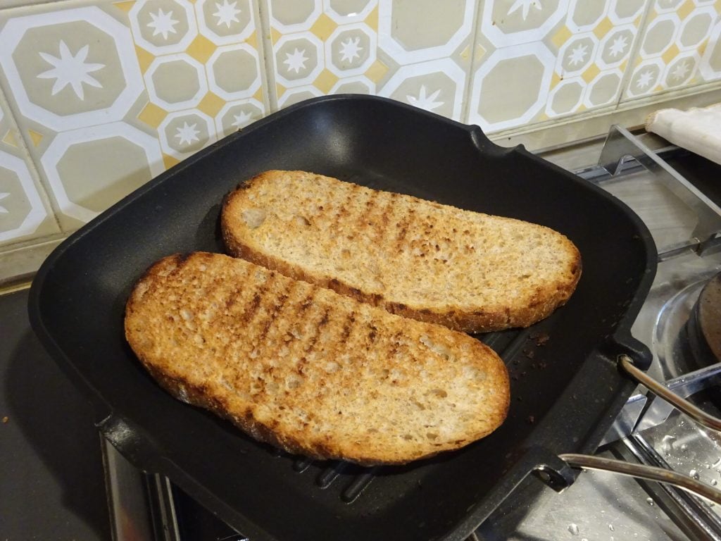 Now toast the slices of whole grain bread on both sides until the desired crunchiness.