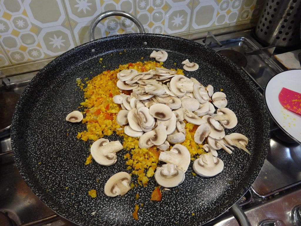 • In the meantime, clean the champignon mushrooms and slice them thinly.