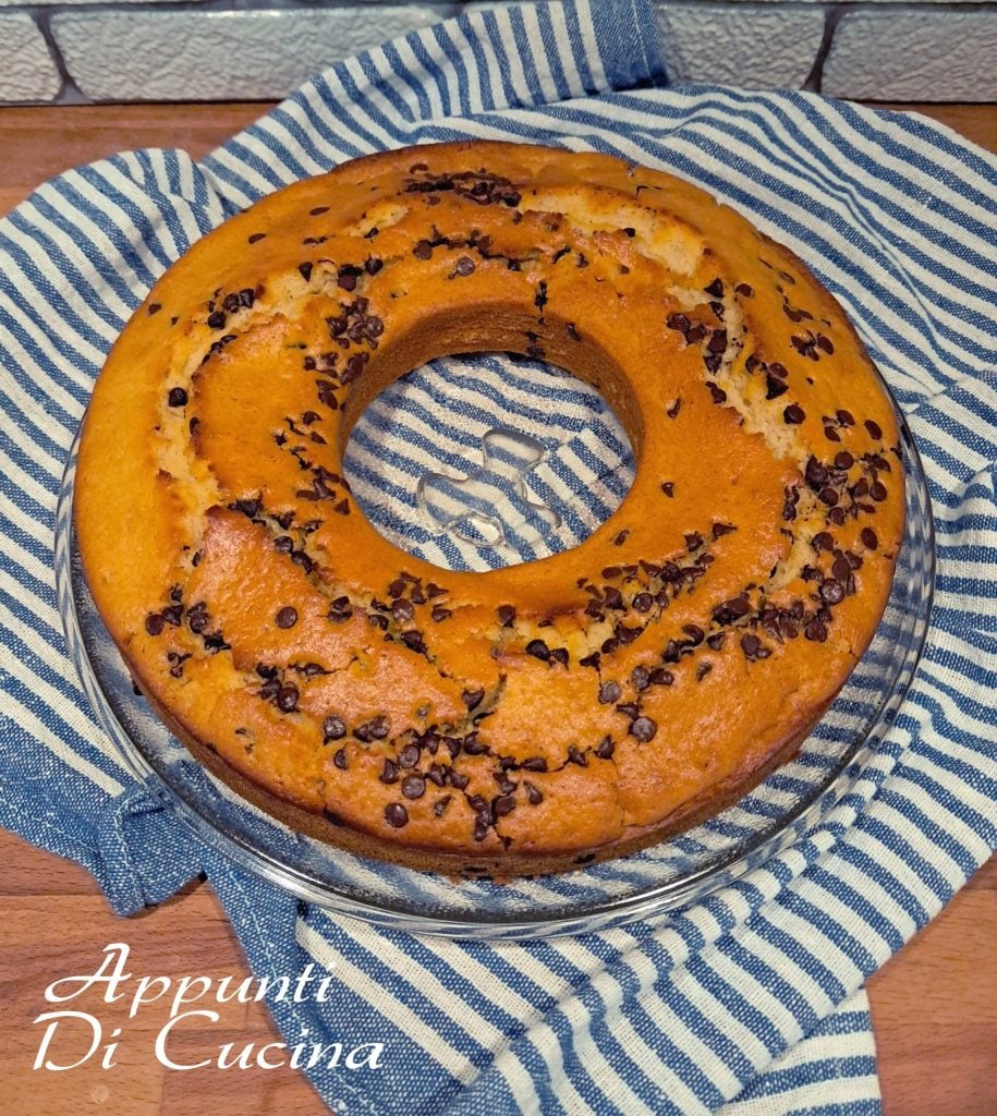 And voilà… the water cake with chocolate chips is ready to be served, perhaps with a dusting of powdered sugar.