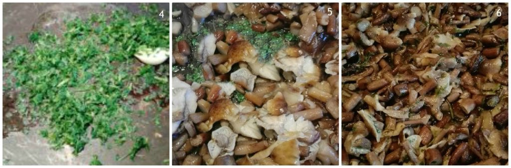 In a pan with olive oil, sauté the garlic, then remove it; add the chopped parsley and cook for about 1 minute.