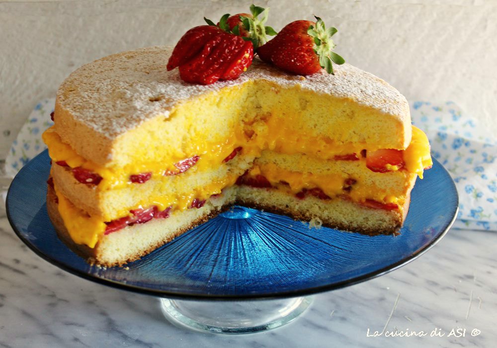 Strawberries and pastry cream fill a fruit cake base scented with vanilla making a beautiful combination for a cake suitable even for celebrating a birthday but it’s exquisite also as a simple dessert or a very delicious snack…