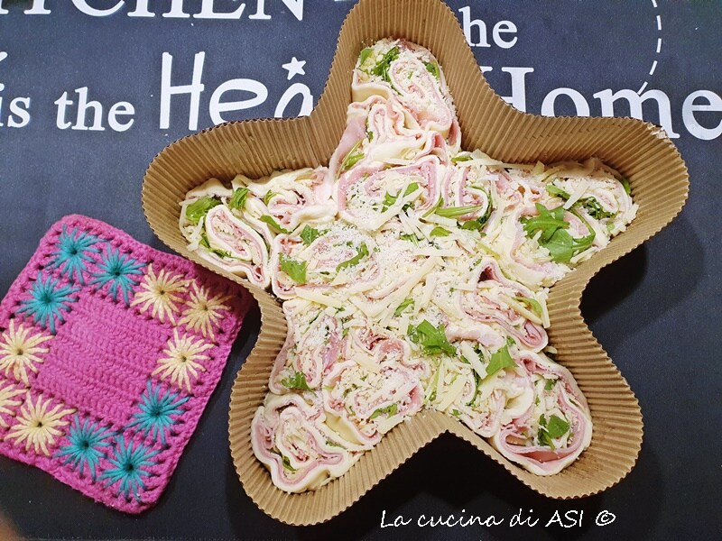 Personally, my Christmas star with ready-made puff pastry was a fridge-emptying recipe because I used cooked ham that Andrea didn’t want to eat and a piece of emmental left from some pork rolls cooked in a pan and pecorino that was the star of a gricia pasta dish last night.