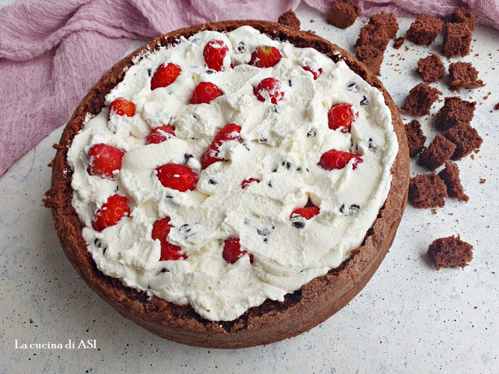 Having said that (because in the end I always make a cake, especially for the blog π), this year I thought of a mimosa thatβs different from the others already on my site: made with cocoa, filled with a mascarpone and whipped cream filling, studded with chocolate chips and fresh strawberries.