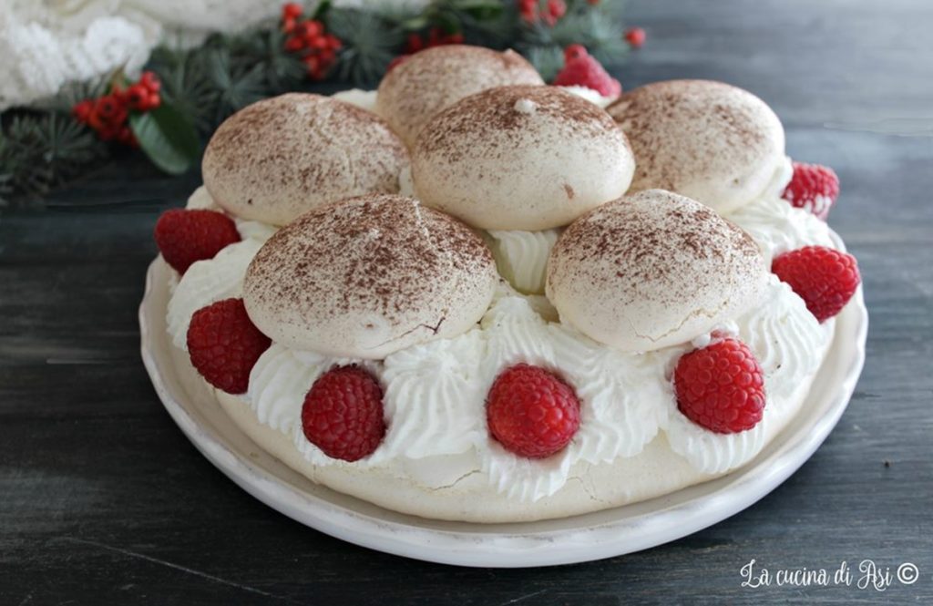 HOW TO DECORATE THE MERINGUE CAKE? Clearly, we can make many different decorations with fresh fruit, dried fruit or more simply a generous dusting of powdered sugar and/or cocoa powder