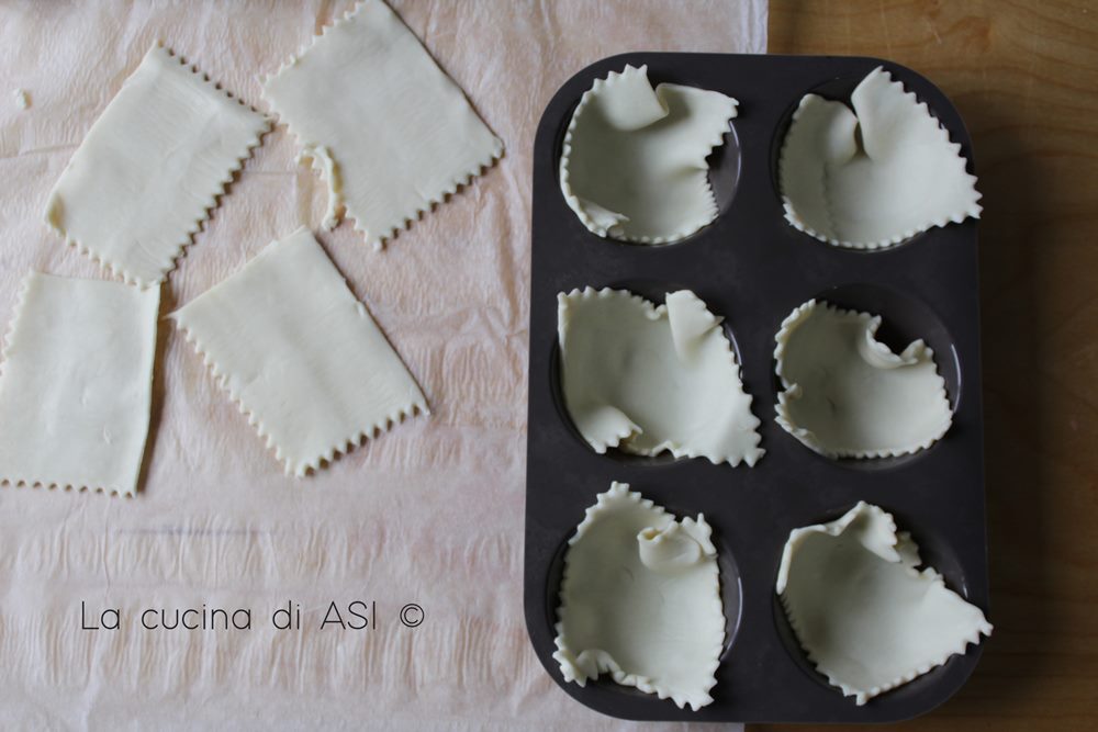 I often use puff pastry which pairs perfectly with sweet recipes as well as savory recipes, and these flaky baskets are a simple container for savory mousse creams, small salads with boiled or grilled vegetables, small legumes, and even leftover pasta squares…
