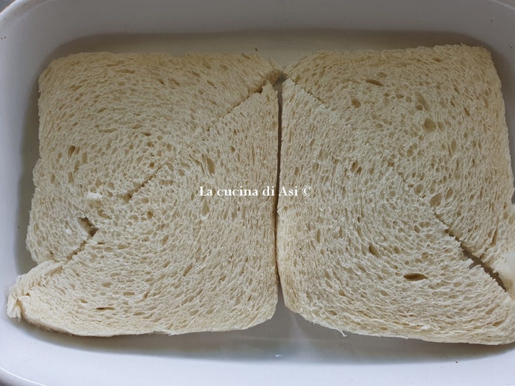 Take a baking dish and, after generously buttering it, cover the bottom with slices of bread arranging them to cover it evenly.