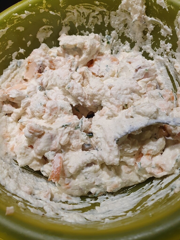 • In a bowl, combine ricotta, cooked fish, Parmesan, parsley, salt, and pepper. Mix well until you have a creamy and compact mixture.