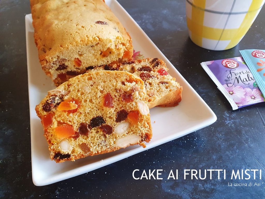 To make this dessert more indulgent, we could also serve it with some custard, which, being fluid and vanilla-flavored, would envelop this mixed fruit cake perfectly!