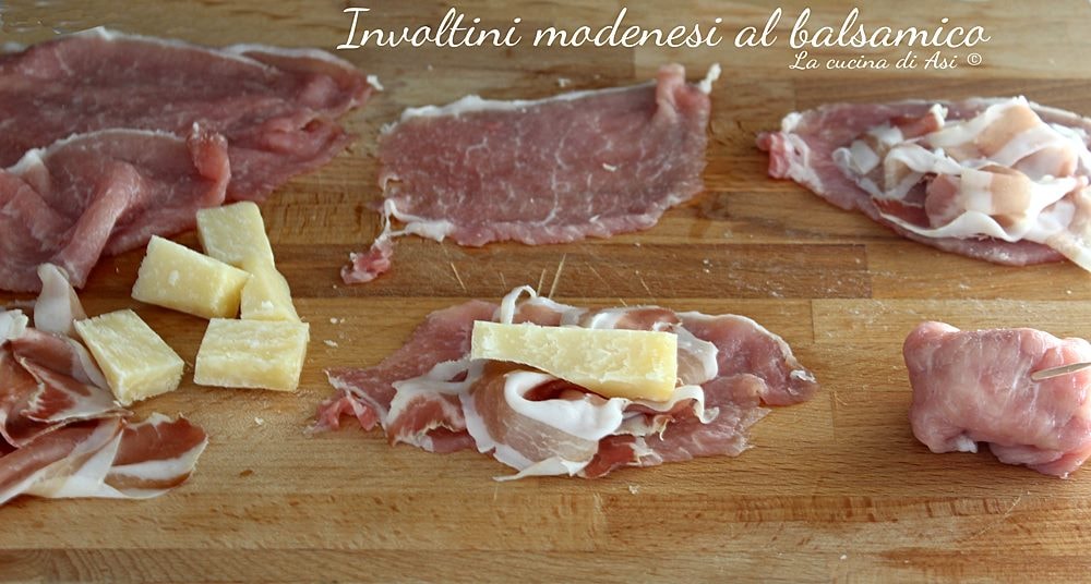 The recipe for rolls with balsamic vinegar is made by taking the chosen meat, which is then cut into very thin slices similar to carpaccio and then filled with succulent slices of rolled bacon and a nice cube of Parmigiano Reggiano!