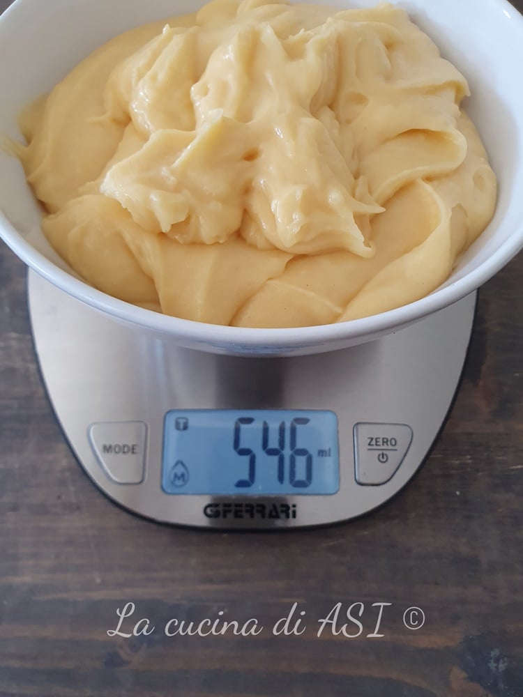 I cover with cling film in contact, and while it cools, I move on to make the choux pastry.