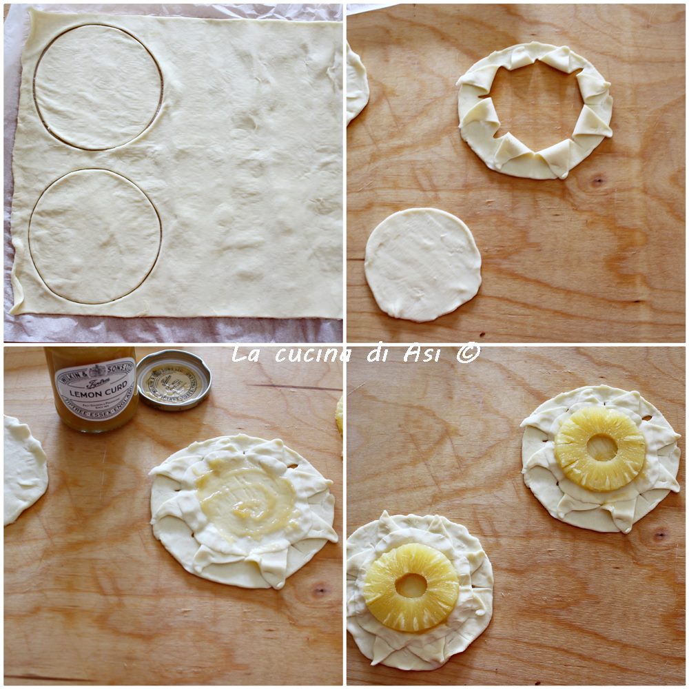 For the sunflower pastries with pineapple, I made a small photo collage to make the way of making the treat more understandable, and in this little recipe, I also added some lemon curd which adds a magnificent tangy boost to the overall taste!!