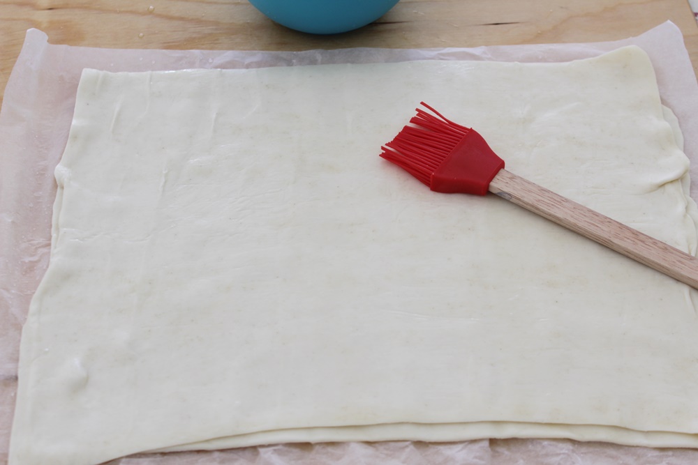 After placing the first, I brush with water then place the second and brush again then place the third and last roll of ready-made puff pastry.