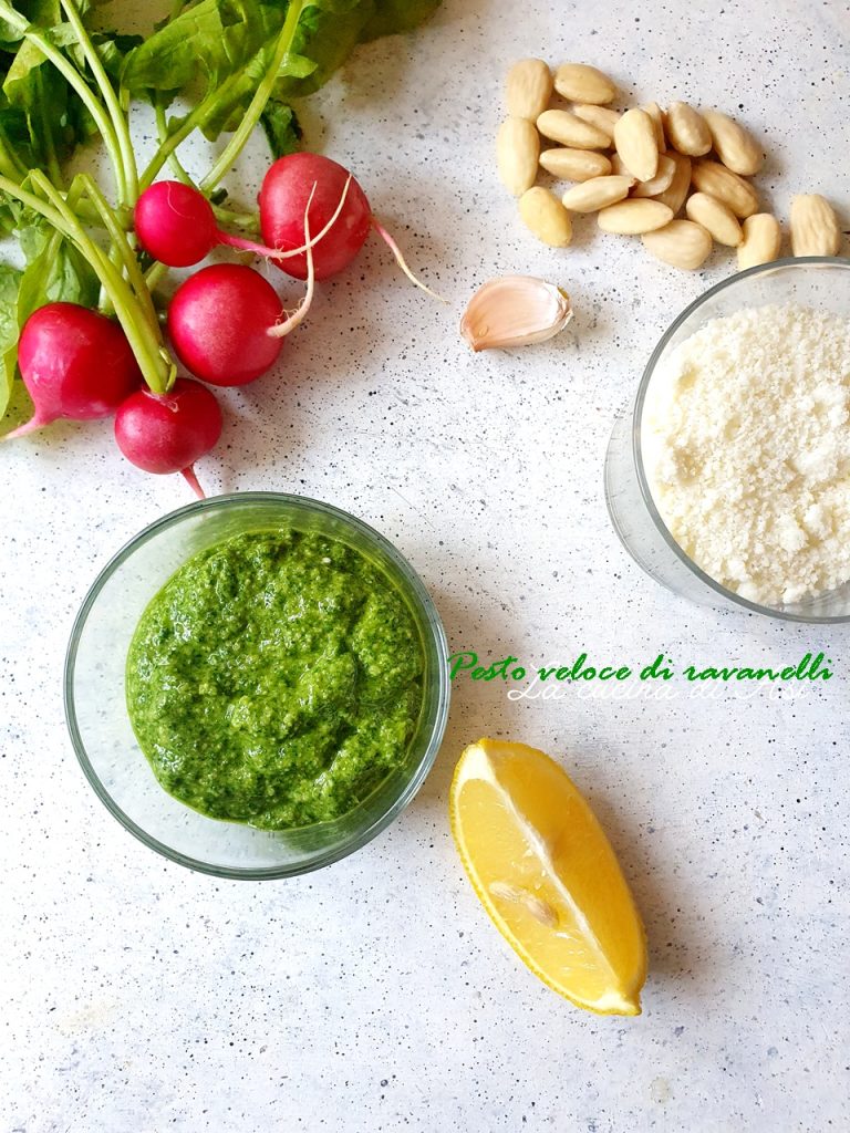 Have you ever thought of using radish leaves to prepare a quick condiment, fragrant and waste-free? Today, I propose a radish leaf pesto ready in 5 minutes, perfect for pasta, bruschetta, or to give a boost to cold dishes and summer sides.