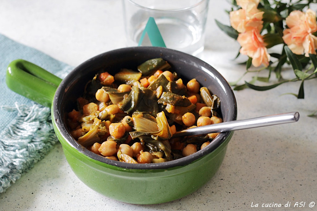 Stewed Chickpeas and Swiss Chard are a simple, rustic, and flavorful dish that can accompany a slice of meat or a baked cod fillet prepared with mixed herbs.