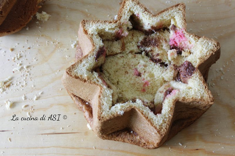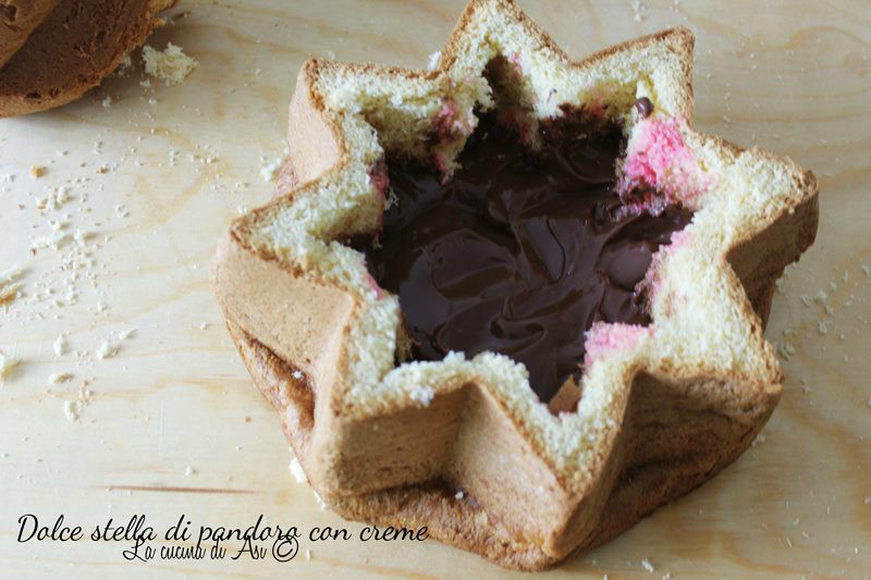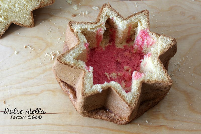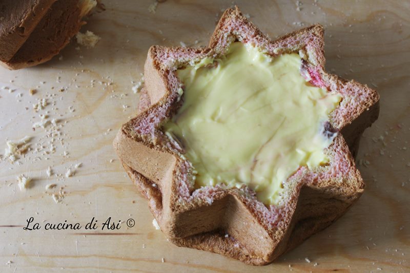 I was a bit undecided on how to fill the star among mascarpone creams like tiramisu, citrus cream (lemon and orange), milk cream, ganache … then I opted for a classic type zuppa inglese with yellow cream and chocolate cream!