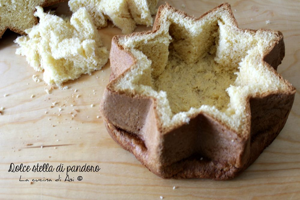 • With a serrated knife, I carved the star shape at the edges and extracted the pandoro.
