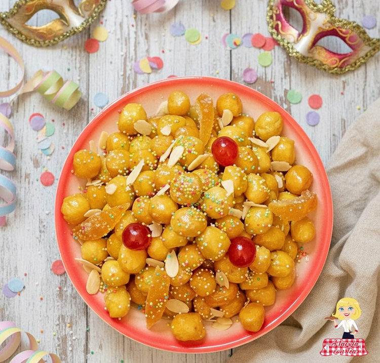 Cicerchiata is the sweet symbol of Carnival, but also of Easter in some regions. It is traditionally served at the end of a meal.