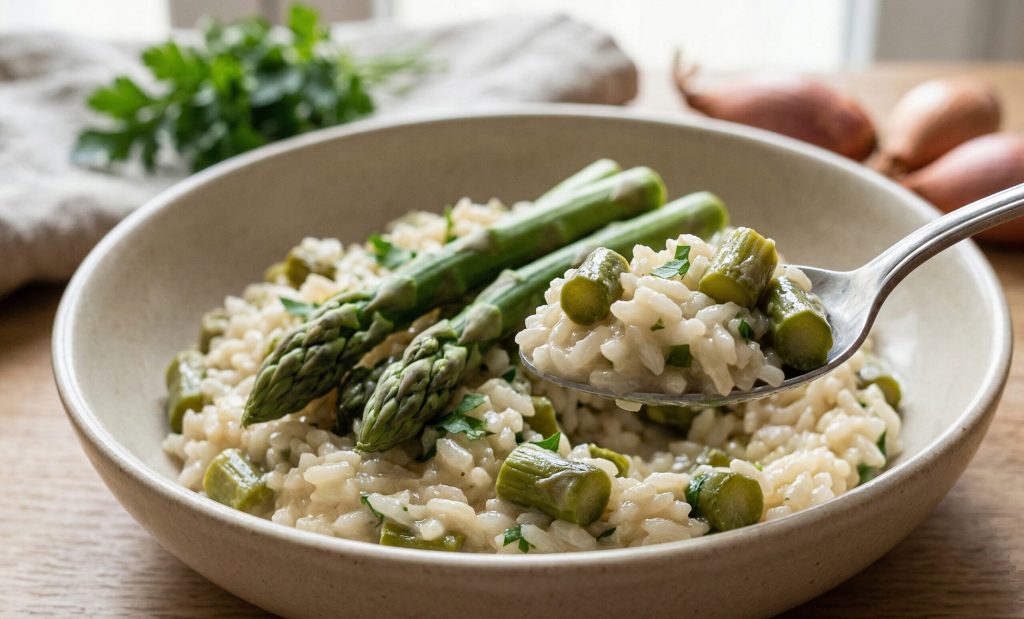 Asparagus risotto: the secret to perfect finishing and intact tips