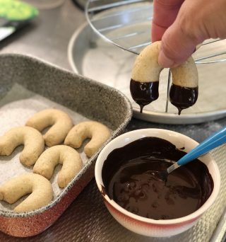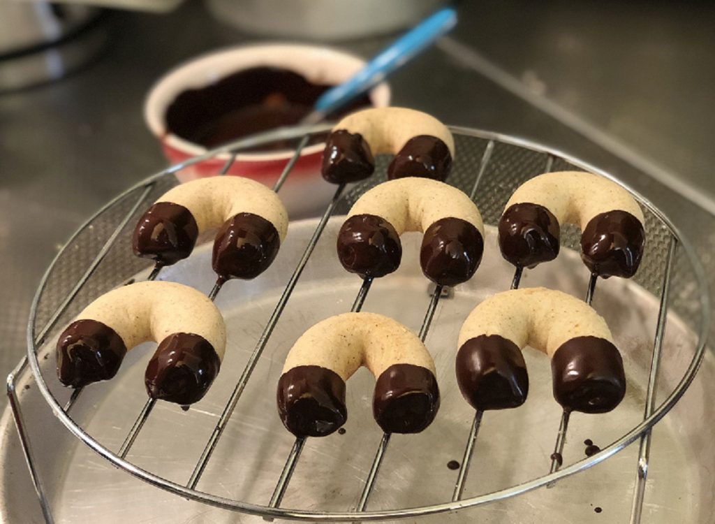 The secret of the goodness of Horseshoe Cookies is in the ends glazed with melted chocolate and in the buttery, crumbly shortcrust pastry.