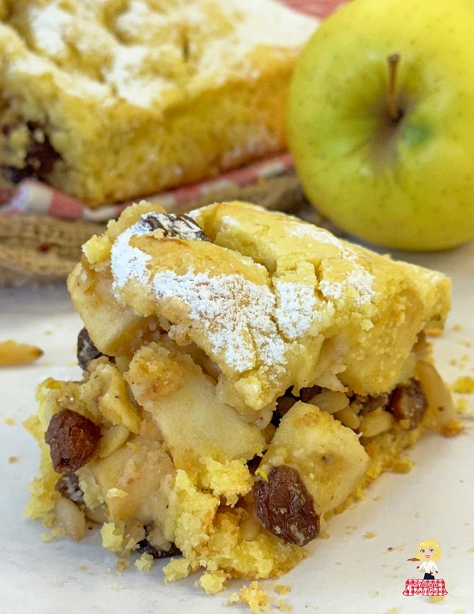 If you don’t have time or desire to make the dough, you can replace the shortcrust pastry with ready-made puff pastry available at the supermarket, although obviously, the result will not be the same. As for the filling, don’t worry because you will assemble it in a few minutes: just cut the apples into pieces, mix them with cinnamon and sugar, add raisins and pine nuts, and it’s done.