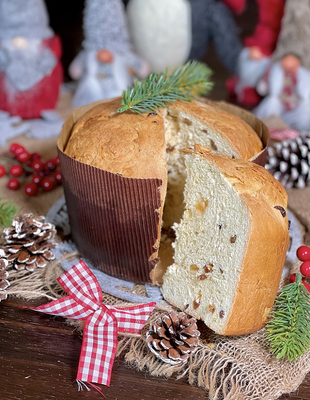 A fragrant, very easy panettone enriched with raisins and candied orange peel, which you can replace with chocolate chips or dried fruit.