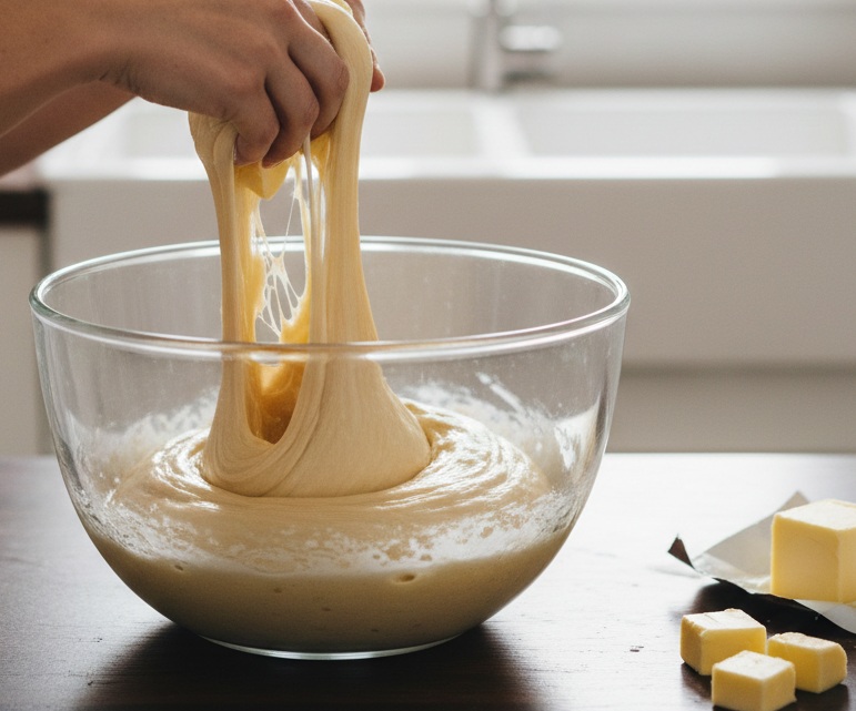 Spreadable butter: Make sure the butter is really soft but not melted, otherwise it will be difficult to incorporate properly without ruining the gluten development.