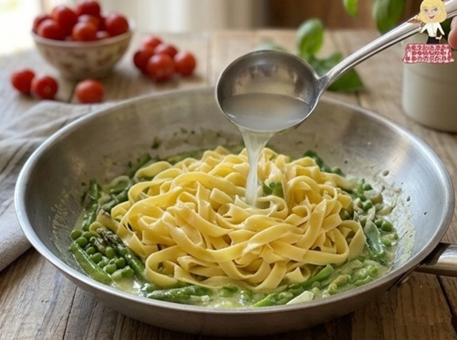 With cured meats: If you don’t want a vegetarian dish, you can enrich the sauce by adding strips of speck or crispy pancetta, adding them to the pan together with the asparagus tips.