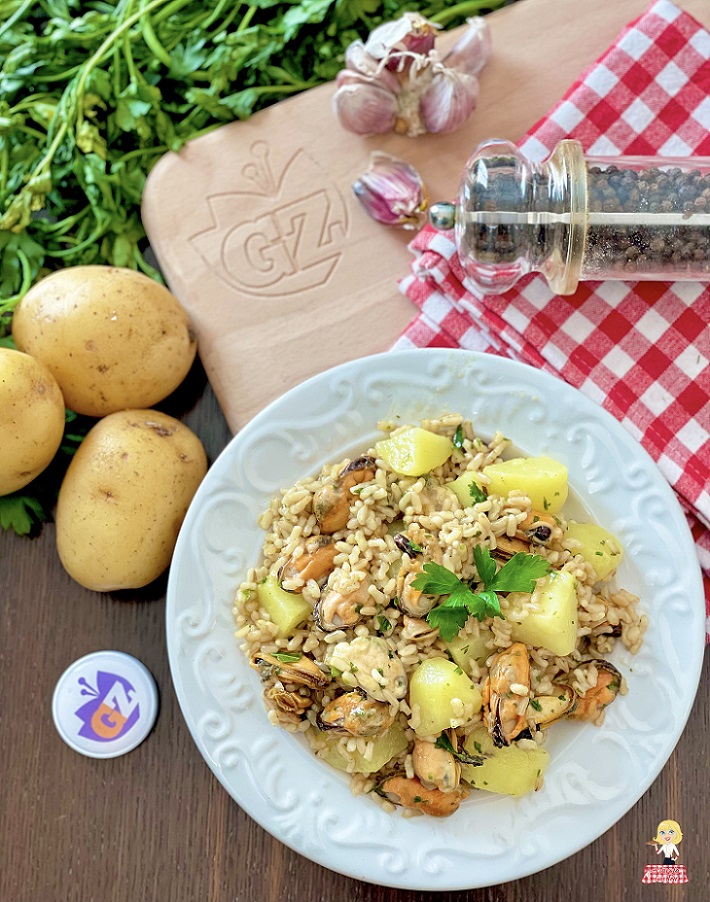 The result is still very similar to the original and will allow you to prepare a creamy and flavorful skillet-cooked RICE with POTATOES and MUSSELS.
