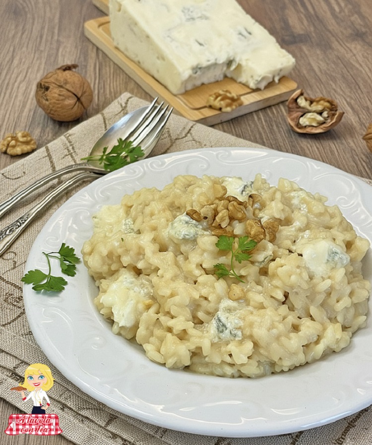 A creamy, flavorful risotto perfect for Gorgonzola lovers like me, which can be enjoyed in its basic version (without walnuts) or with additions such as pears, radicchio and of course walnuts!