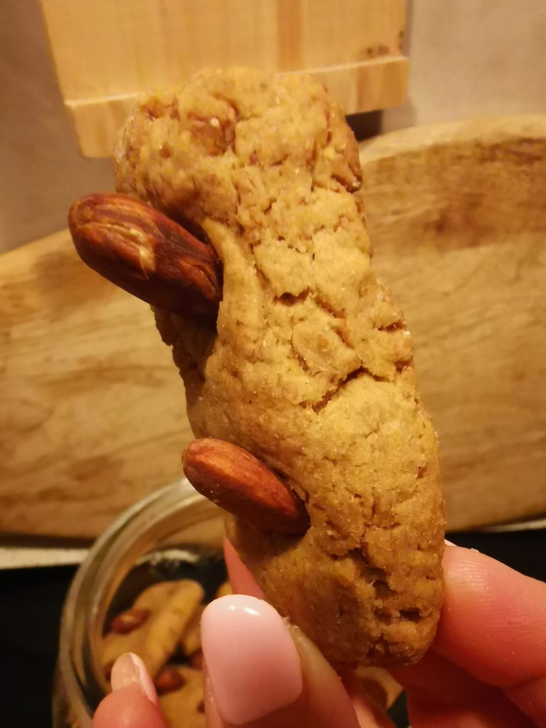 • 0.7 oz almonds (or hazelnuts, one per cookie)