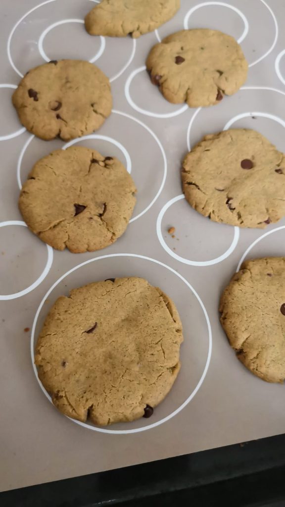 Place the balls on a baking tray lined with parchment paper or a silicone mat and press the ball to flatten it out like a cookie.