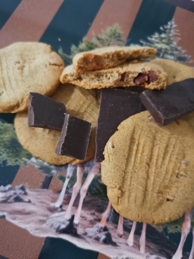 The chocolate chip cookies are shortbread cookies that you can prepare in 10 minutes, without even needing cookie cutters.