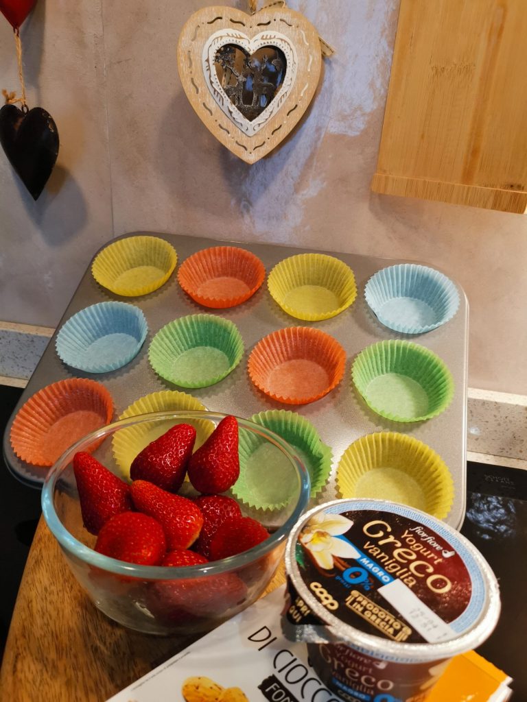 Hi friends, the recipe I’m proposing today is certainly a delicious and tasty one. However, don’t be fooled by appearances because a treat like this, which might seem like a calorie bomb, if you study the ingredients, you’ll notice it isn’t. The quantities are well balanced without excess. I’m offering them in a version with strawberries, but if they’re not in season, I’ve also made them without and they turned out super good. Come with me, I’ll show you the process.