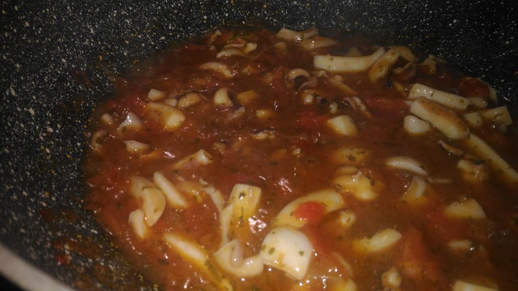 Let the sauce thicken for about 10 minutes and add the cuttlefish.