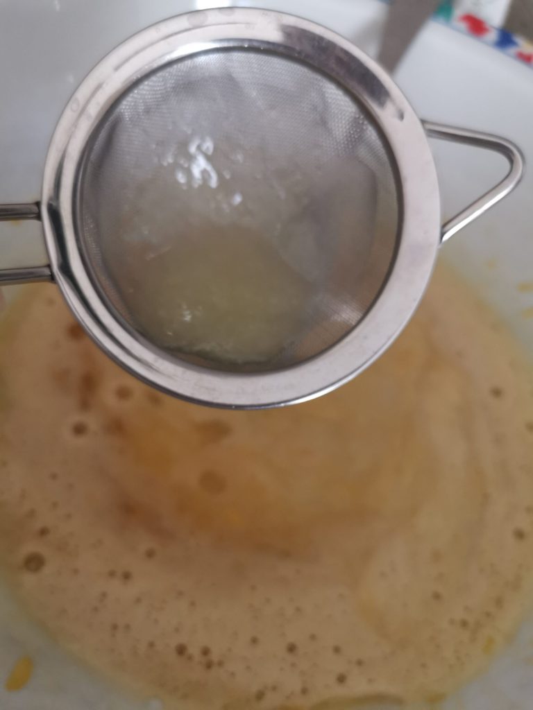 Squeeze a lemon to get the required amount of juice, and strain it through a strainer to remove any seeds.