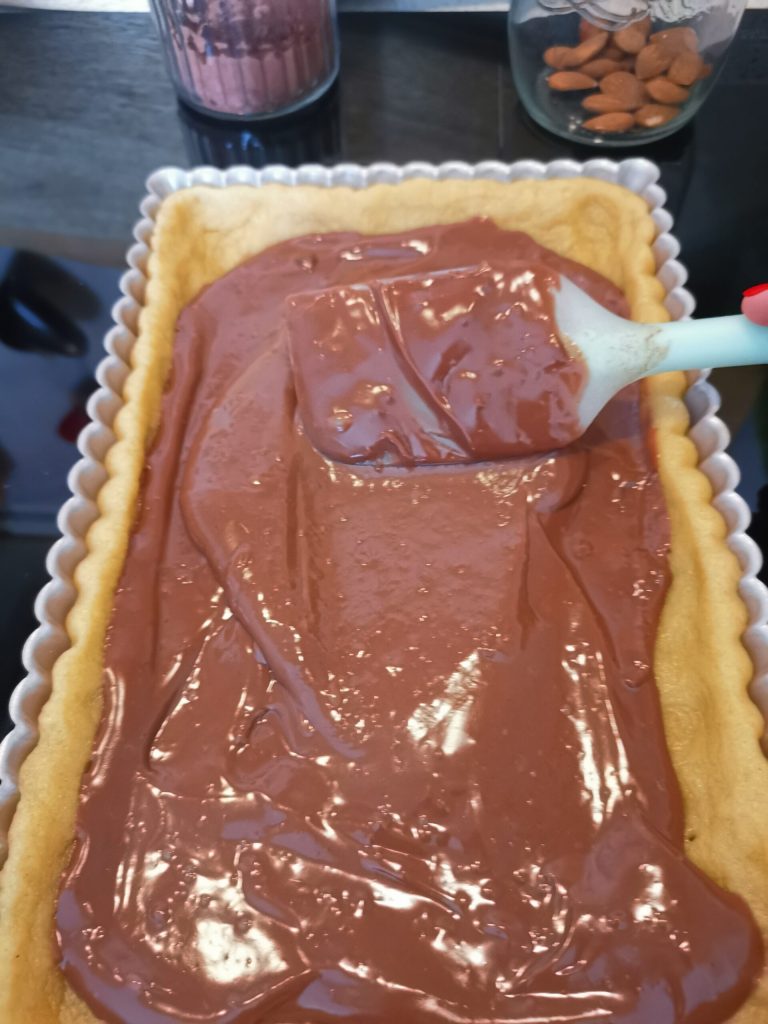 The base is made with a lightly sweetened oil shortcrust pastry and the filling consists of a cocoa cream that is quickly prepared with only 3 teaspoons of sugar. To top it off, puffed spelt and quinoa.