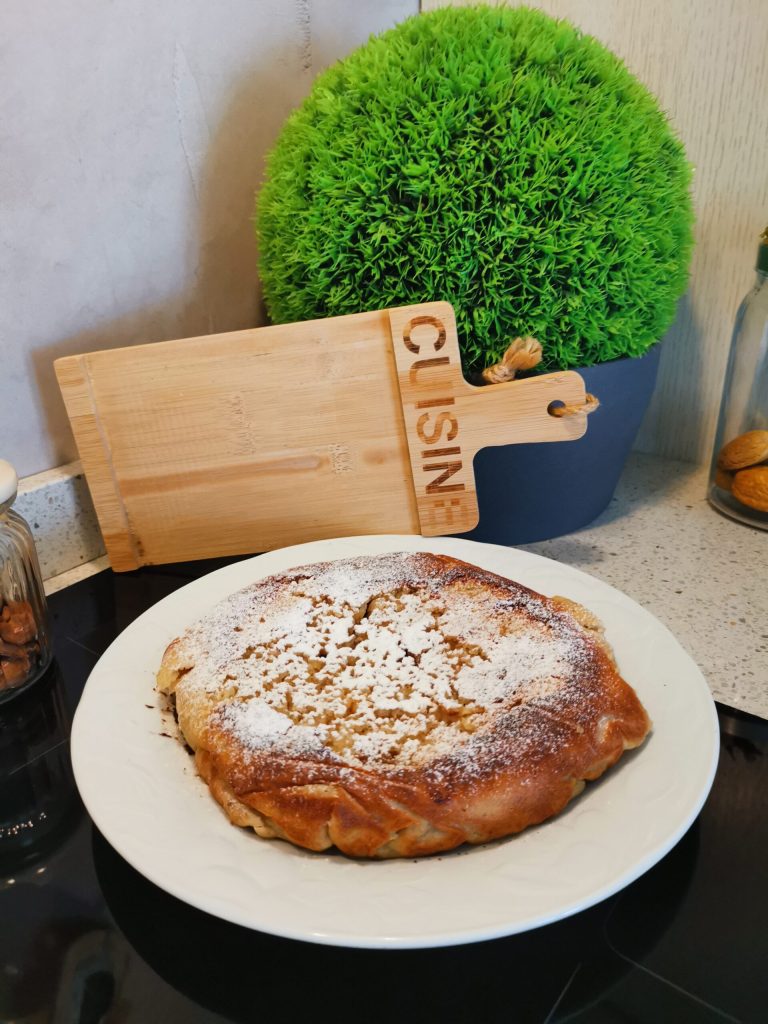 The pan cake is made with a few ingredients, without eggs, milk, or butter. It’s very delicious and simple to make.