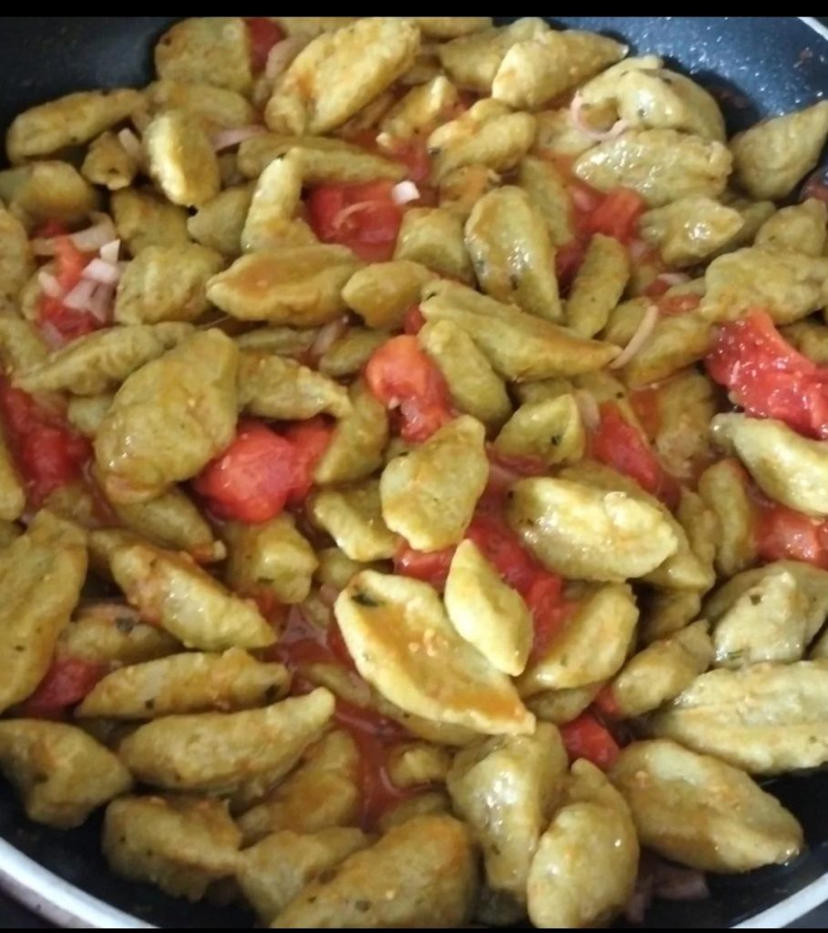 Easily, take the dough in your hands and with scissors cut small pieces (which will form our rustic gnocchi) that you will drop directly into the hot water, or cut them and then put them in the pot, be careful of splashes when you drop them in.