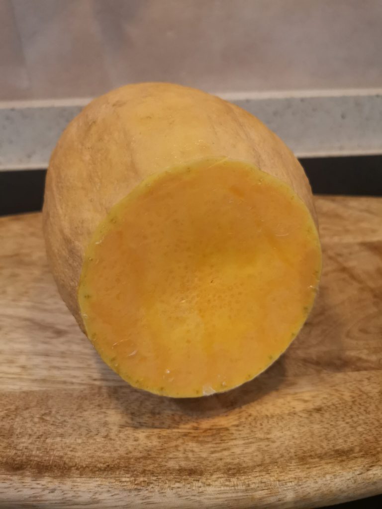 While the broth cooks on low heat, let’s start dealing with the pumpkin.