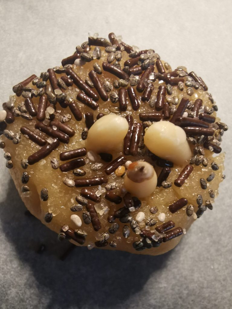 I decorated with pine nuts, seeds, and sprinkles or chocolate chips.